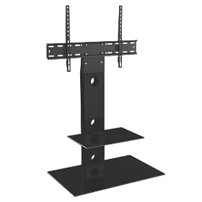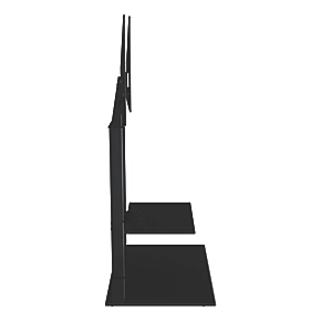 Floating tempered glass shelf helps enhance the features and aesthetic. Integrated cable management within the column allows cables to be easily hidden from view.
