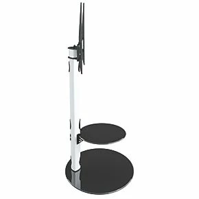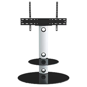 Floating tempered glass shelf helps enhance the features and aesthetic. Integrated cable management within the column allows cables to be easily hidden from view.