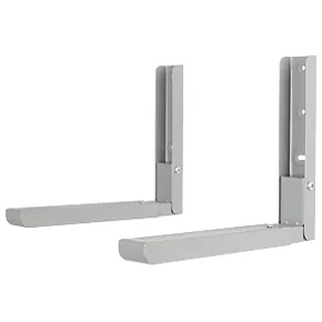 Adjustable silver wall mounts for standard microwaves. Arms extend from 29 to 45cm (12-18″). Supplied with hardware for solid and stud-wall installation.