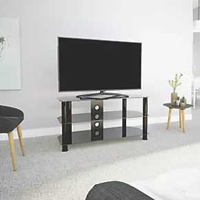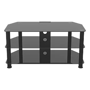 Easy to construct, contemporary and versatile. Tempered safety glass and durable stainless steel legs modernise any area, while the angled corners save valuable space when placed into a corner of a room. Arrange various AV components on the middle and bottom shelves.