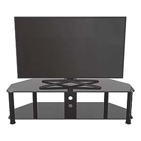 Easy to construct, contemporary and versatile. Tempered safety glass and durable stainless steel legs modernise any area, while the angled corners save valuable space when placed into a corner of a room. Arrange various AV components on the middle and bottom shelves.