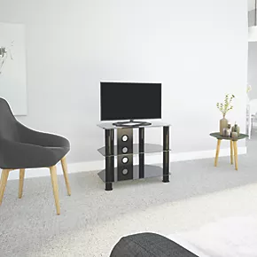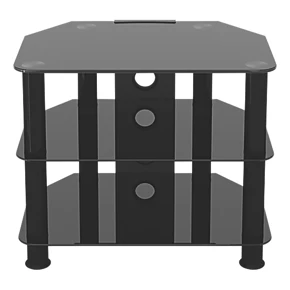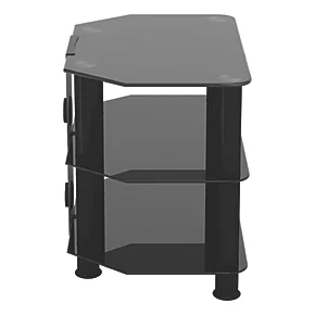 Easy to construct, contemporary and versatile. Tempered safety glass and durable stainless steel legs modernise any area, while the angled corners save valuable space when placed into a corner of a room. Arrange various AV components on the middle and bottom shelves.