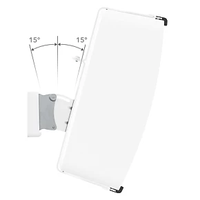 Tilt and turn adjustable speaker wall mount. Easy to install, no tools required. Compatible with Sonos Play:1, Sonos Play:5 and other speakers with a screw thread or keyhole slot, up to 6.5kg. Features 15° up and down tilt function and 35° left and right turn function for optimal speaker positioning. Fixings included for use in wood stud or solid walls.