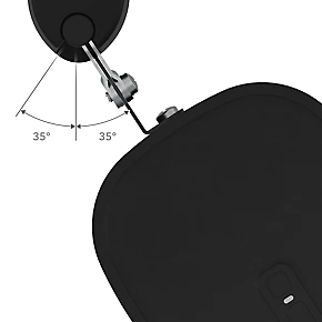 Tilt and turn adjustable surround sound speaker wall mounts. Easy to install, no tools required. Compatible with Sonos Play:1 and other speakers with a screw thread or keyhole slot, up to 5kg. Features 15° up and down tilt function and 35° left and right turn function for optimal speaker positioning. Fixings included for use in wood stud or solid walls.