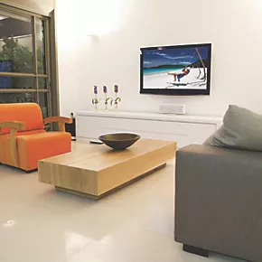 Low profile, flat to wall mounting bracket. Can be mounted to plasterboard, wood stud, metal stud, brick or concrete. VESA size 200 x 200mm and up.