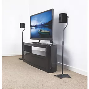 Stylish pair of black metal based speaker floor stands designed to create an ideal sound dynamic and improve TV viewing. Easily adjust the height of the speaker floor stands without the need for tools. Compatible with Sonos Play:1.
