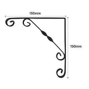 Traditional scroll design. Can be used to support shelves or hanging baskets. Ideal for use with timber or laminate shelves.