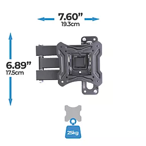 This full motion wall mount is perfect for monitors and smaller TVs, giving complete control of the screen position. Can be used to put a TV in a corner, or move the screen around. Turn the screen left or right (±90°) and tilt it up or down (-5 to 15°) to get the perfect viewing angle and reduce glare. Extend the TV outwards for easy access to cables, or push it back neatly against the wall. Once installed, no tools are needed to change the position or angle of the TV. The mount is fitted in 2 parts, one to the TV and one to the wall. Simply lift and slide the TV onto the wall mount and then tighten the locking screw to secure it.