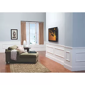 Low profile, super slim mount for 40-85″ TVs. Emphasizes the sleek look of ultra-thin LCD, plasma and LED TVs by placing them just ½” (1.4cm) from the wall. Offers additional features that make it incredibly easy to install and use. ClickStand technology holds the bottom of the TV away from the wall for easy cable access without removing the TV from the mount. Convenient quick-release tabs on both mounting brackets stay hidden, but easily pull down to unlock the TV from the wall plate for cable access. The ProSet feature allows post-installation height and leveling micro-adjustments for perfect positioning after hanging. Lateral shift allows the TV to move left and right on the wall plate so its placed exactly where its wanted, even with off-center studs. Wall plate mounting holes are designed to accommodate 16 or 24″ studs.